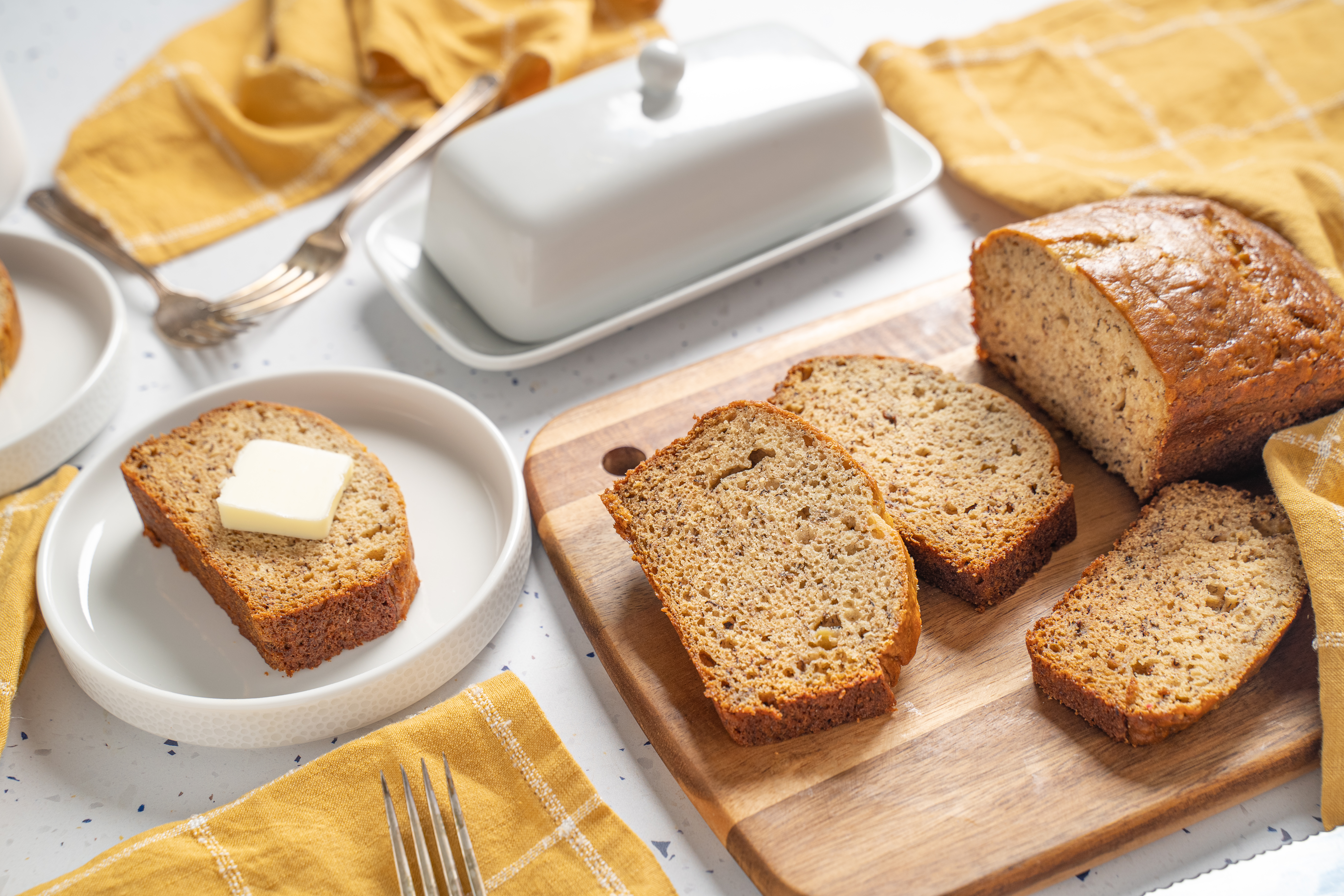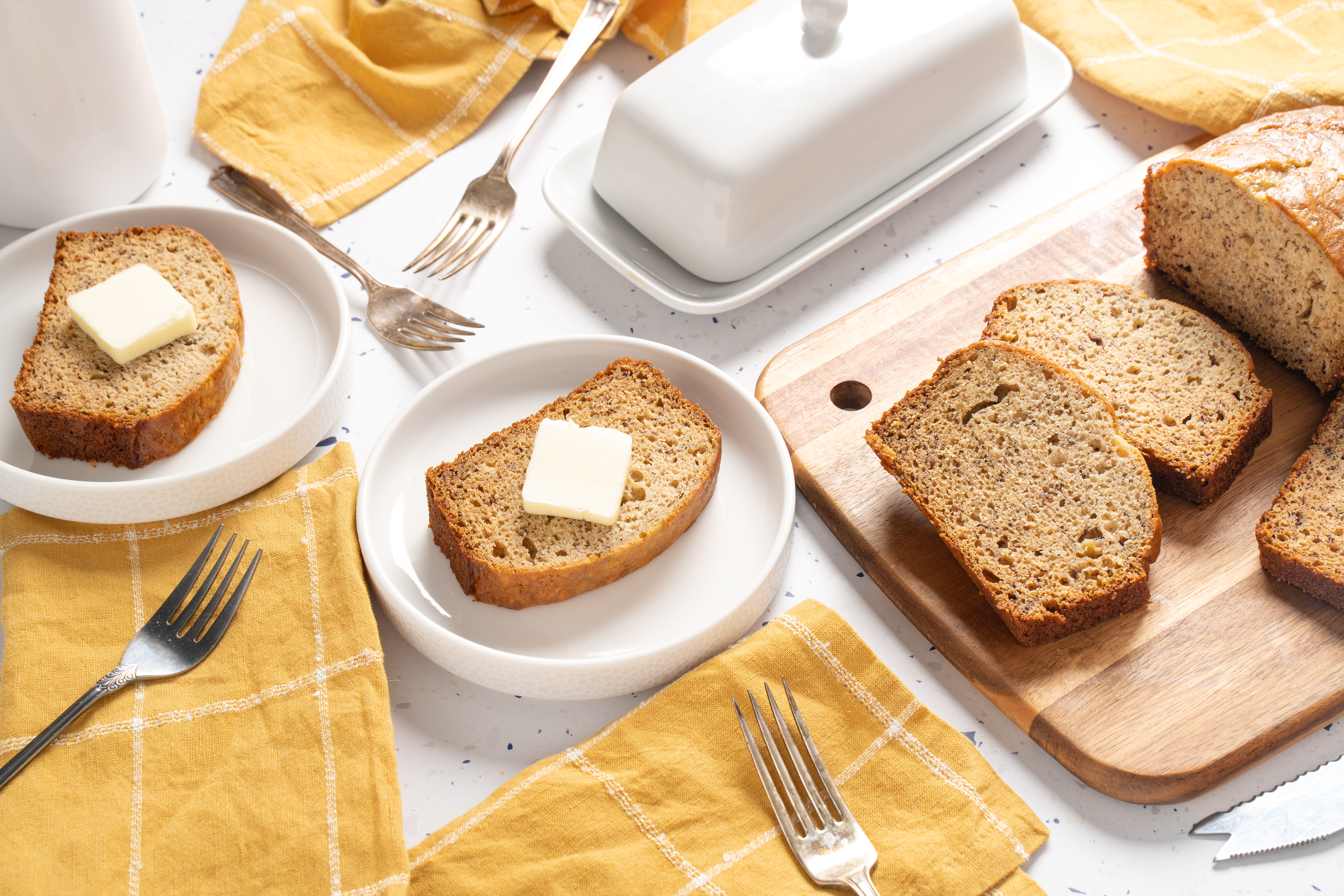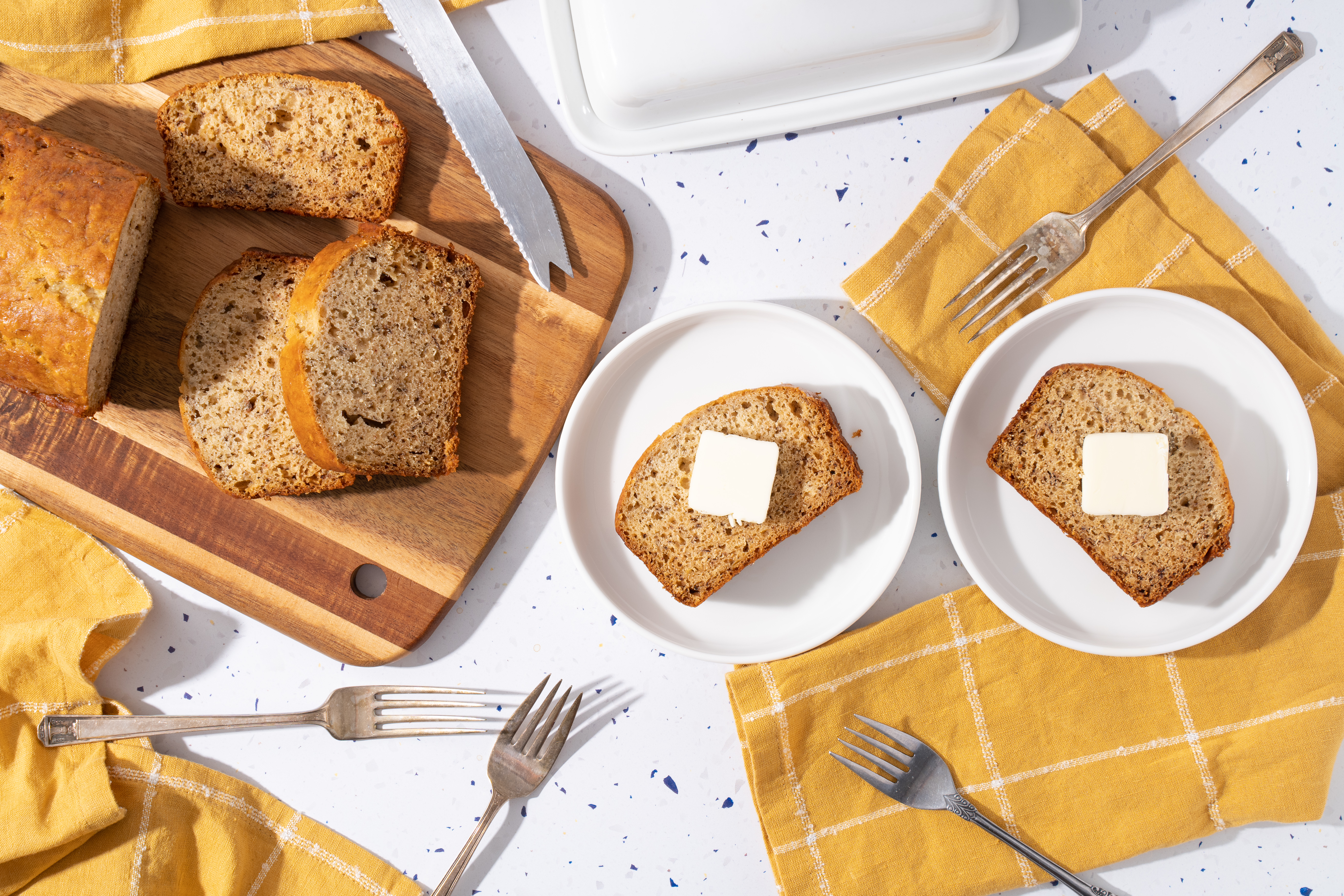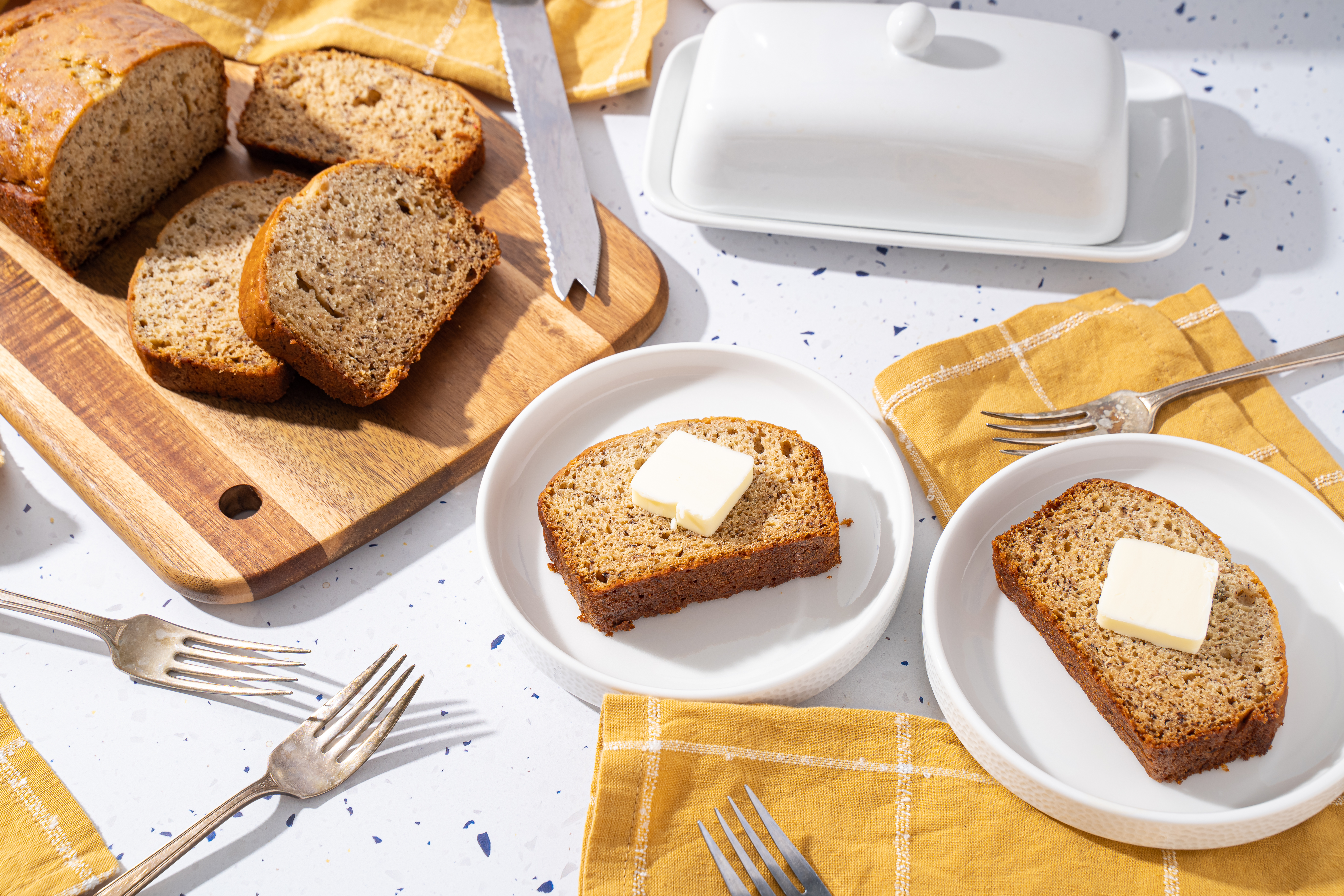 It's Buttermilk Banana Bread! Is there a baked good out there more comforting, or more reminiscent of home? It would be hard to top the moist, tender cake, infused with the light, tropical sweetness of banana and the floral fragrance of vanilla. The buttermilk in the batter adds a delightful tang that helps contrast and elevate the sweetness. Find some new nostalgia with a slice of Buttermilk Banana Bread on your plate!