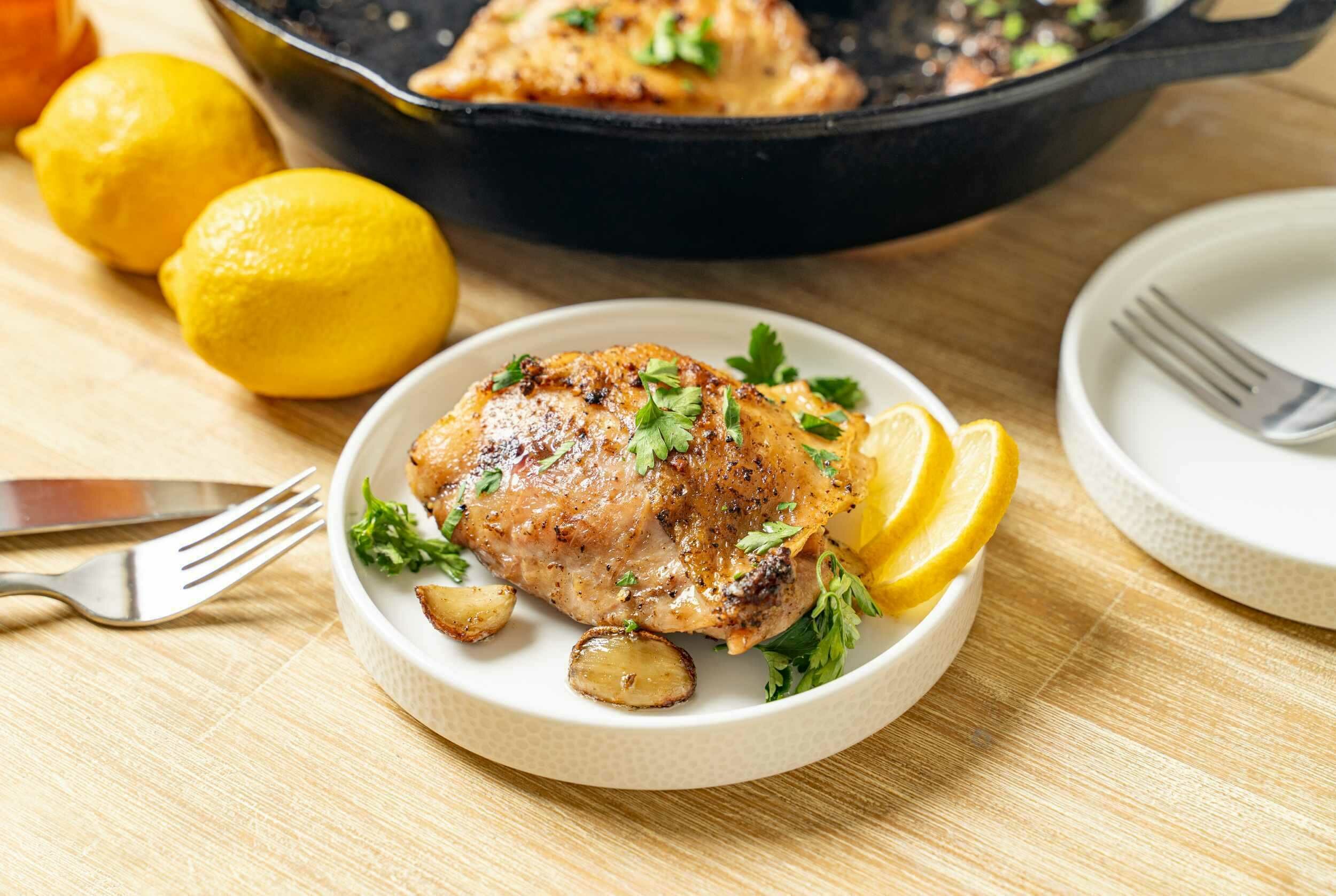 - 4 chicken thighs, bone-in, skin-on