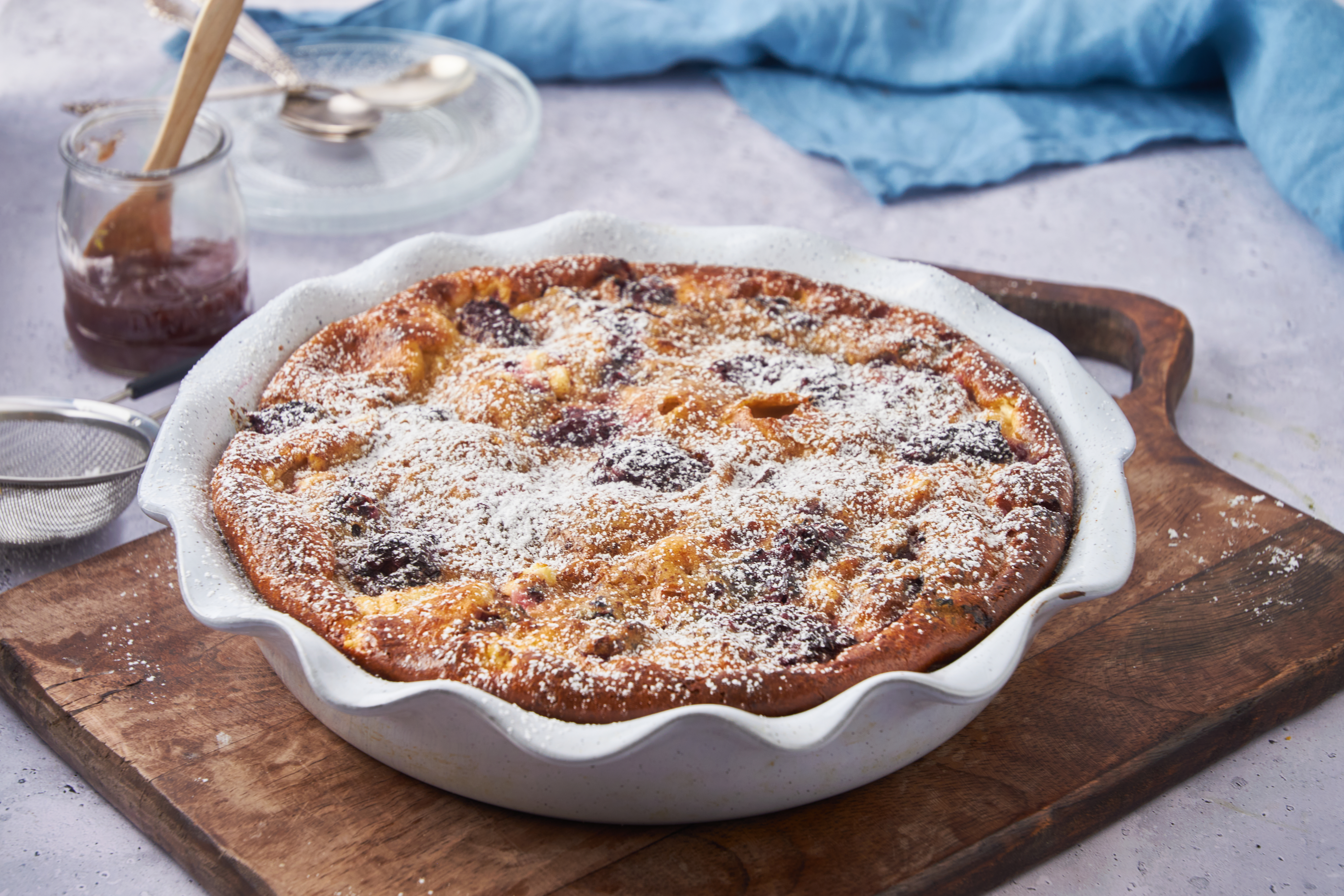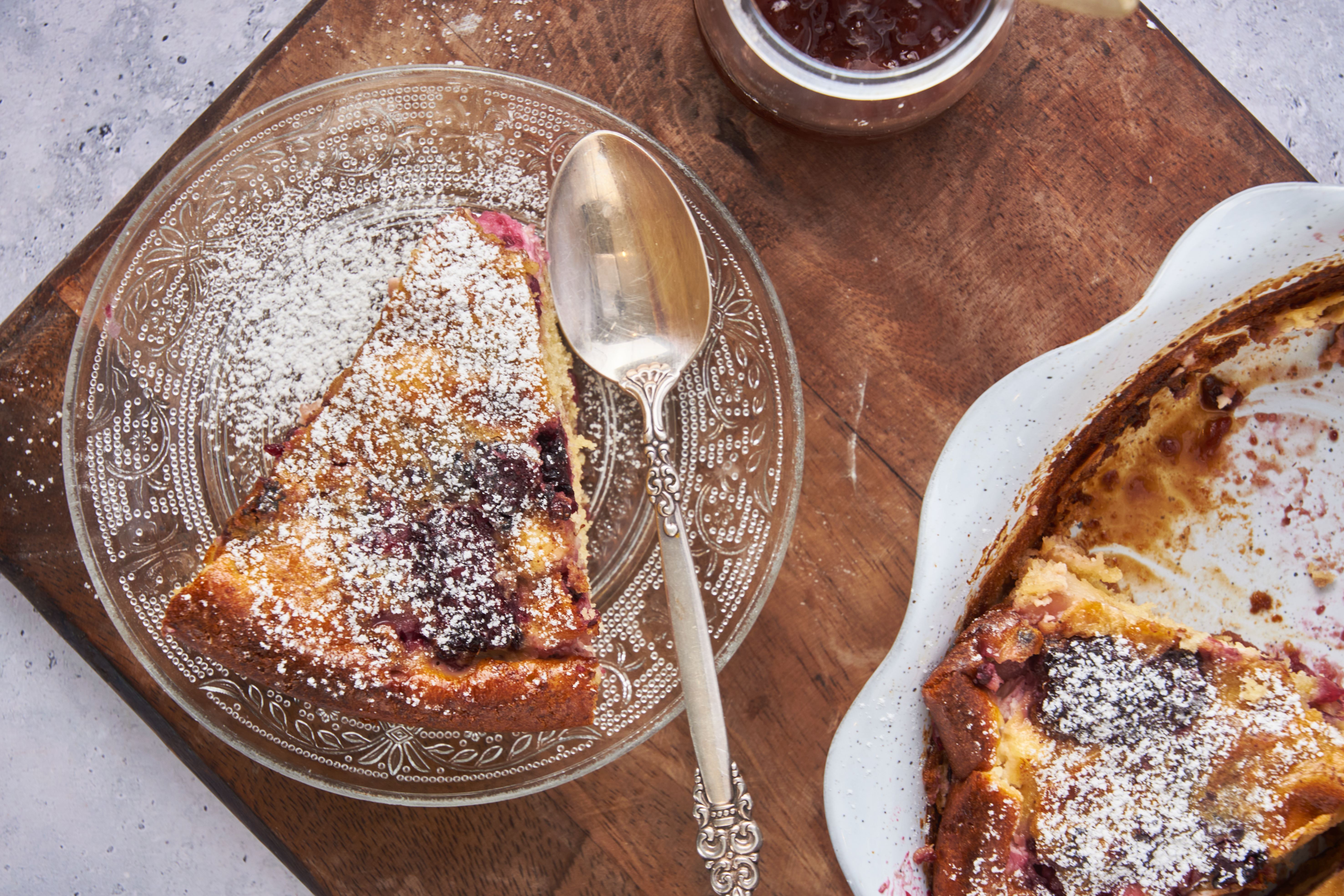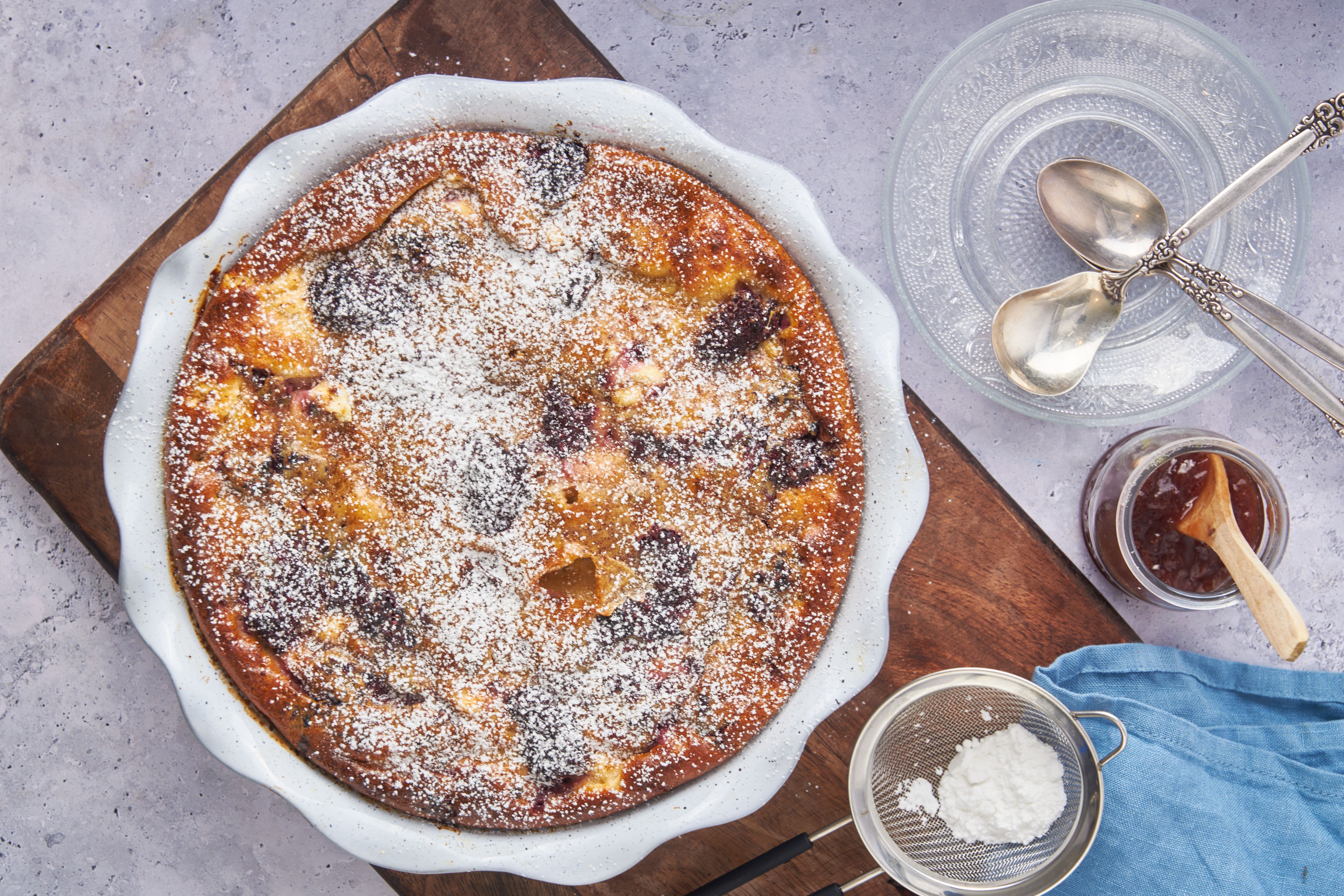 Step 10 -Pour the egg mixture over the blackberry jam layer.