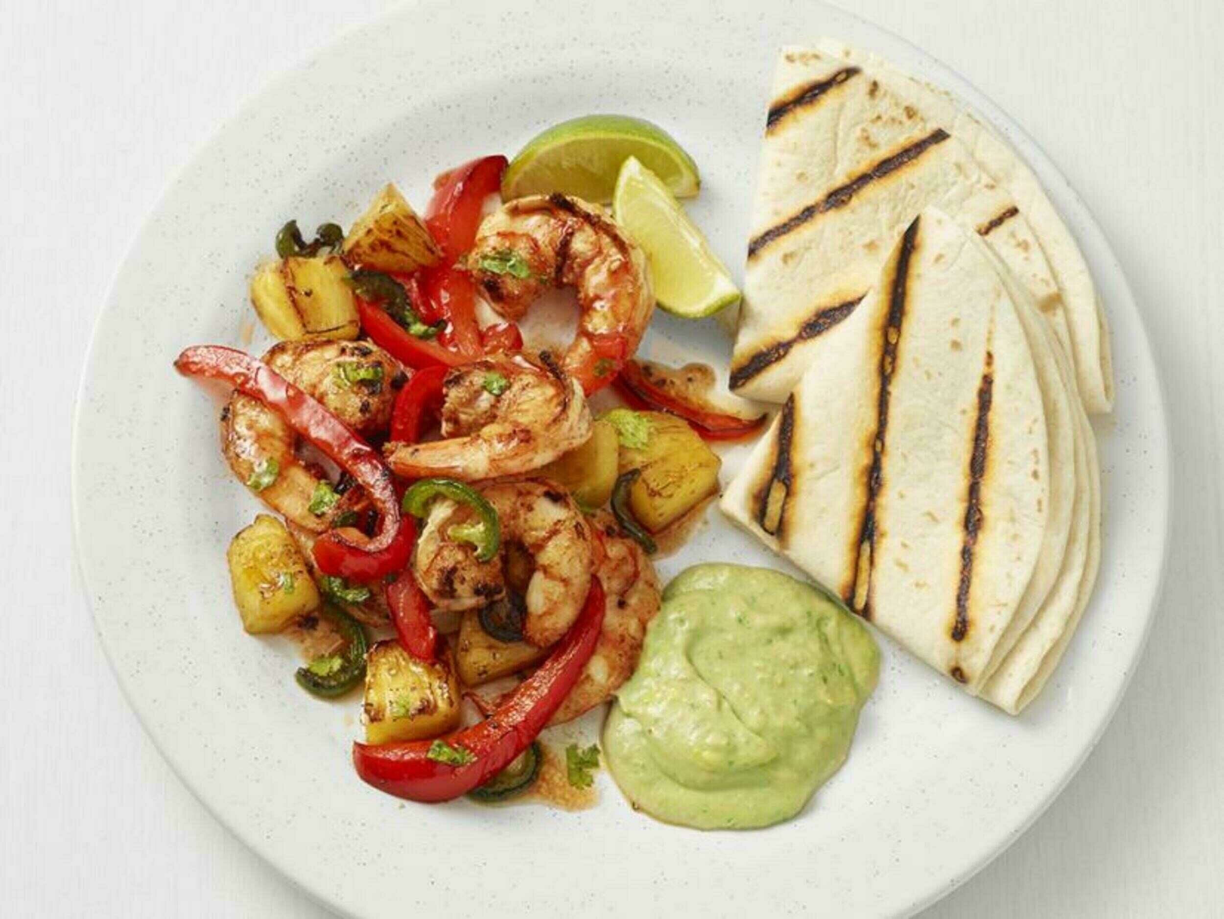 Step 12 -Serve the grilled shrimp and the veggies in the warm tortillas.