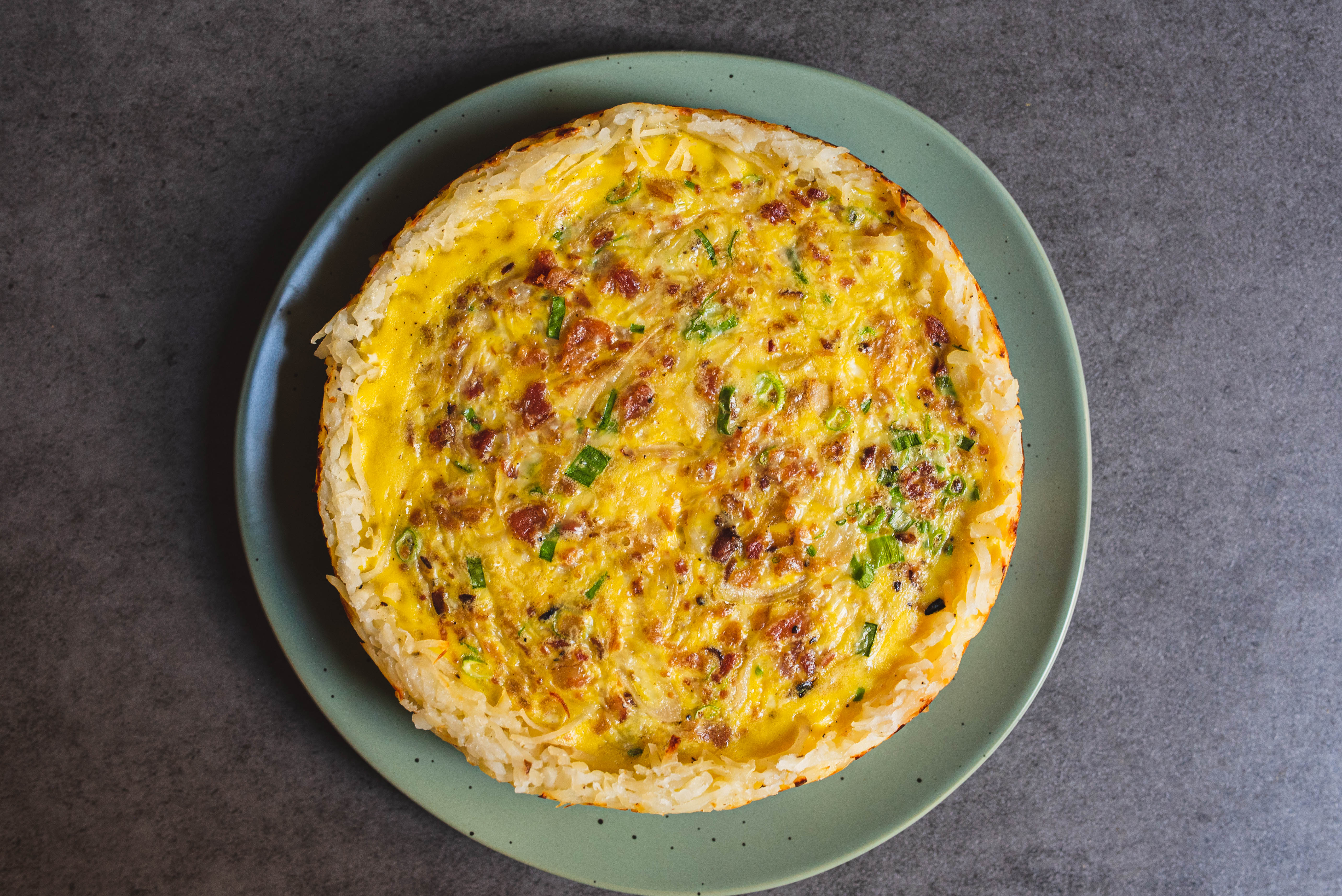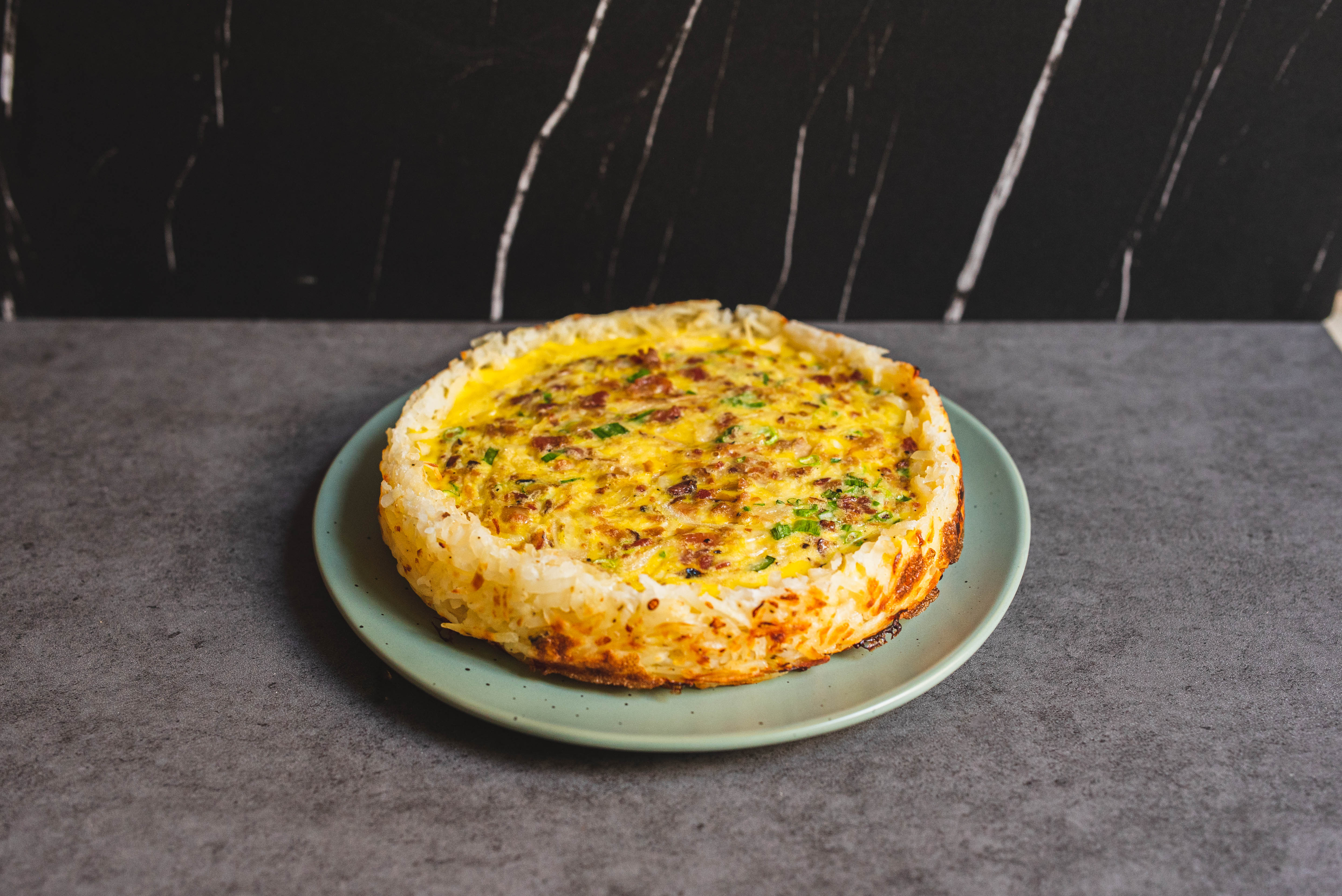 Step 4 -Evenly press the hash brown mixture into the bottom and sides of the prepared pan, making sure there are no holes within the crust to prevent any leakage.