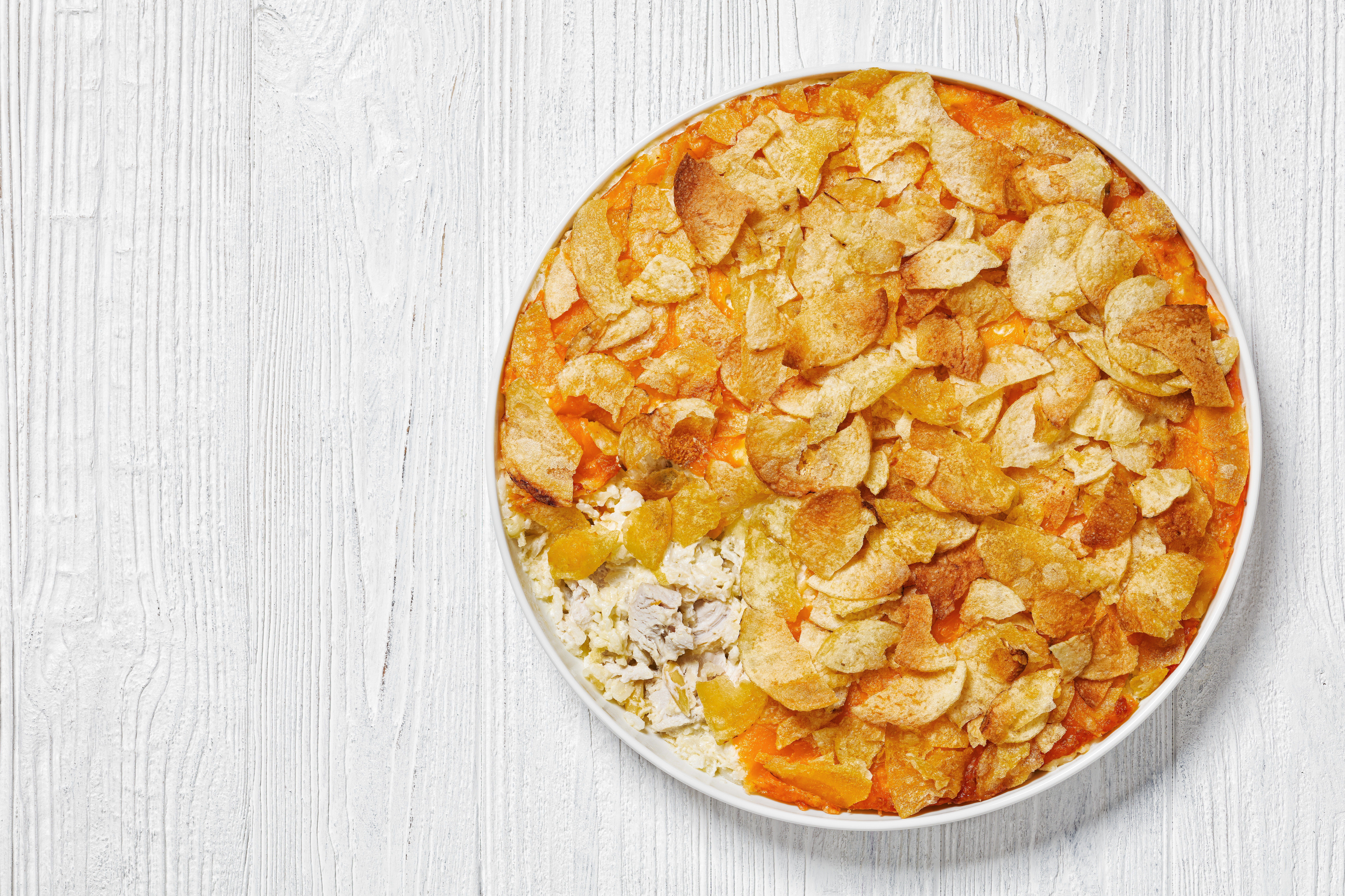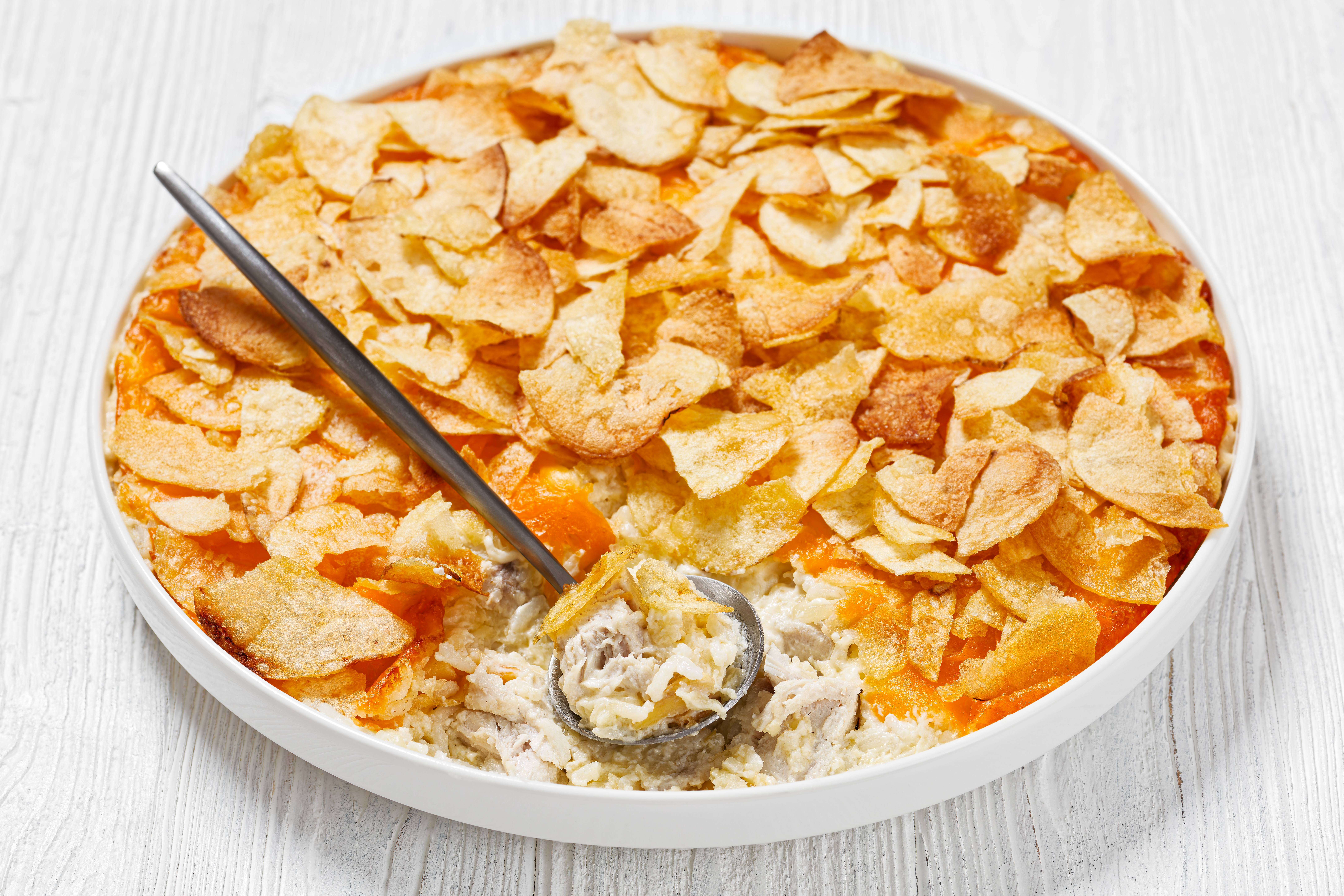 Hey, don't judge a book by its cover. Whether you're a mayo enthusiast or not, Mayo Dinner Casserole could sound a little questionable... we get it. But don't fret! There's more to this bake than just mayo. It's a savory, creamy dish that's loaded with fluffy rice and juicy chicken. There's some melty cheese (yum!) and a little bit of crunch thanks to some slivered almonds and crushed potato chips. See? Isn't this Mayo Dinner Casserole Dinner sounding a little better already?! As momma always said, "Don't knock it 'til you try it!"