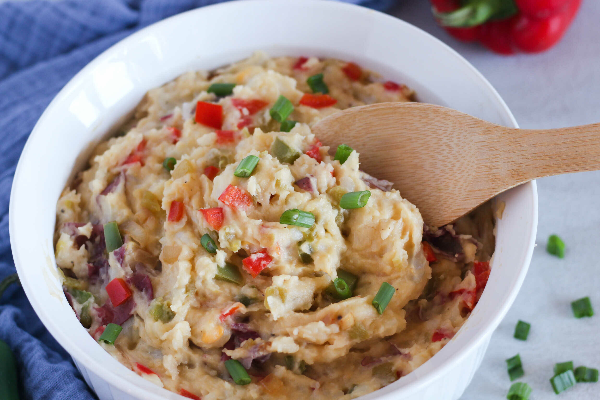 Take plain mashed potatoes on a trip to the culinary borderlands. Tex-Mex Mashed Potatoes elevate the creamy, buttery, fluffy joy of mashed potatoes with new color and spice from tender peppers and jalapeño. With a pleasing tang of cheddar cheese, Tex-Mex Mashed Potatoes are an even heartier twist on a dinnertime favorite. Ride into the sunrise with these Southwestern flavors!